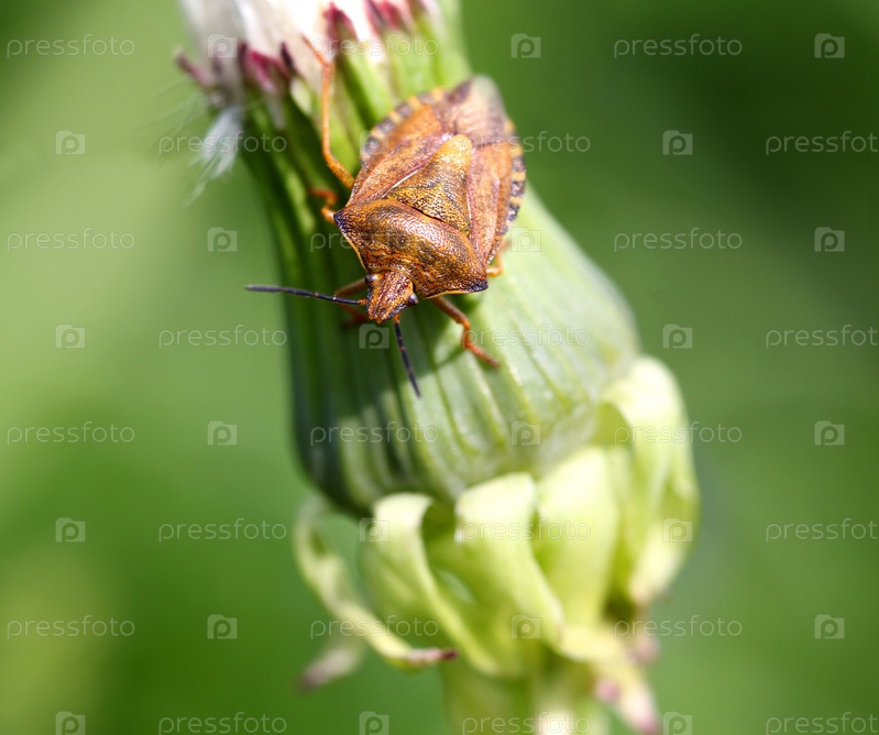 Жук на зеленом одуванчике