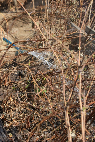 Полив кустов в саду
