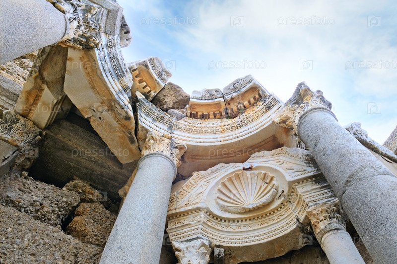 Прекрасный вид древних руин в Сиде, Турция