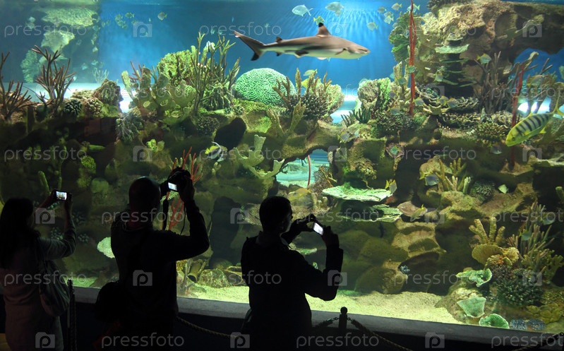 Люди фотографируют в океанариуме