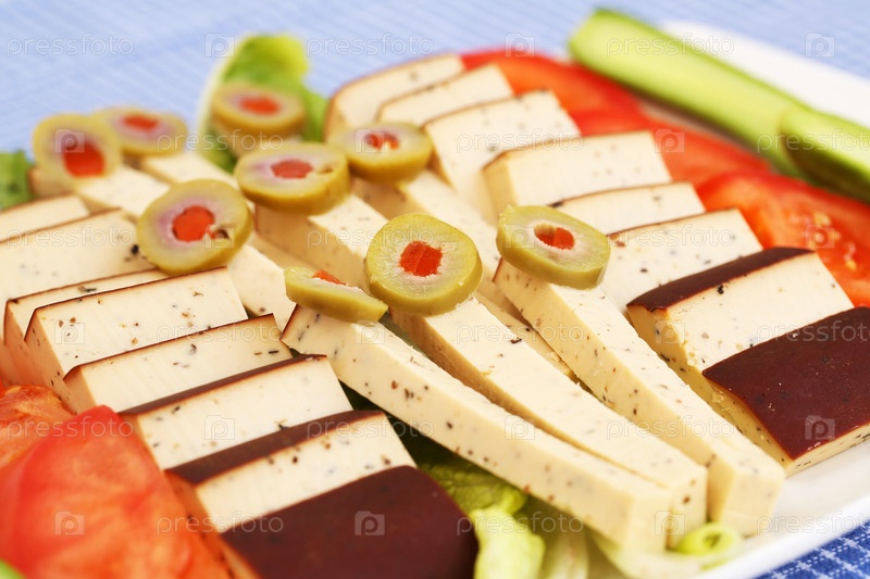 Сыр, оливки и овощи