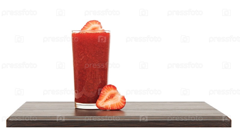 Свежая клубника и стакан сока, изолированные на белом фоне