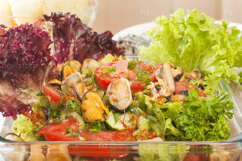 Овощной салат с мидиями