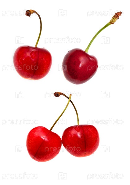 Красная черешня крупным планом, изолированная на белом фоне