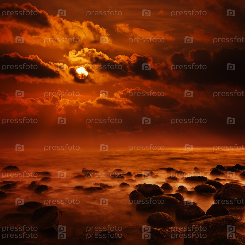 Фантастический ярко-оранжевый закат над тропическим океаном