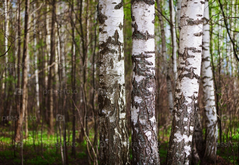 Стволы берез в северном лесу