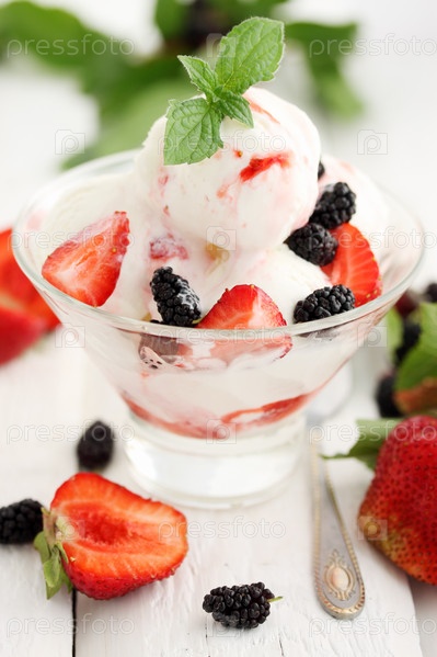 Ванильное мороженое с клубникой и шелковицей