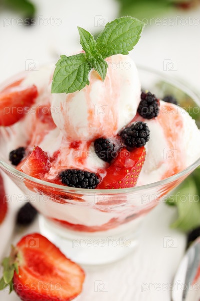 Ванильное мороженое с клубникой и шелковицей
