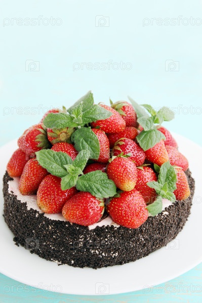 Шоколадный торт с сочной клубникой и мятой