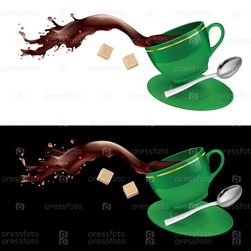 Кофе в зеленой кружке. Иллюстрация на белом и черном фоне