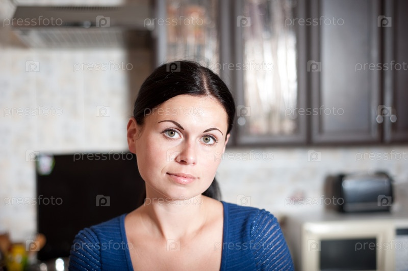 Портрет молодой женщины в кухне