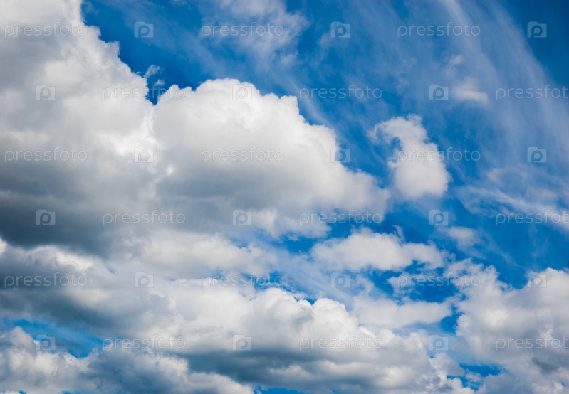 Пушистые белые облака в синем небе