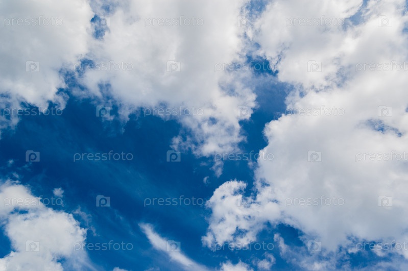 Пушистые белые облака в синем небе