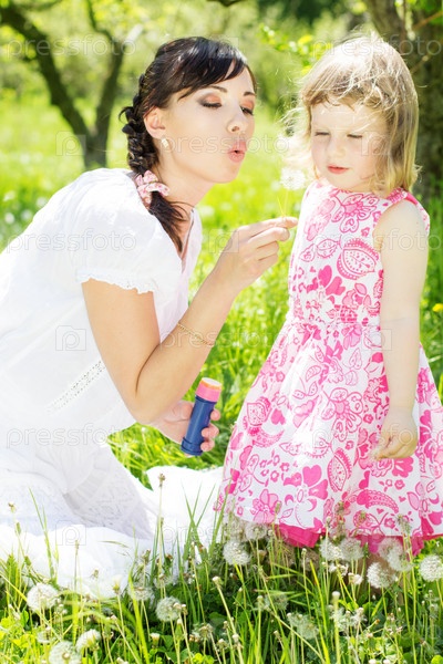 Маленькая девочка и мать в парке