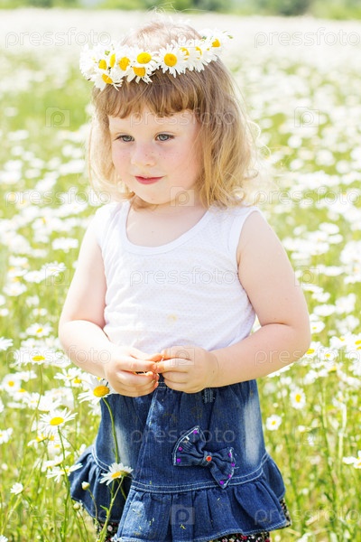 Девочка в венке на поле ромашек