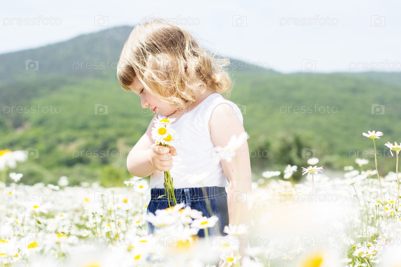 Девочка на поле ромашек