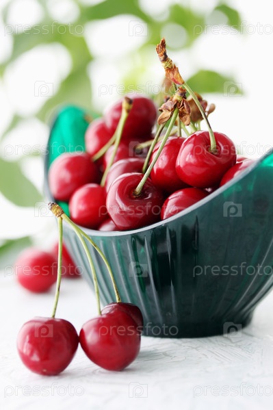 Спелые сочные ягоды вишни в миске