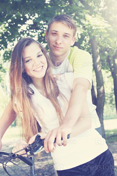 Молодая пара на велосипеде