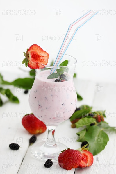 Смесь йогурта с клубникой и шелковицей