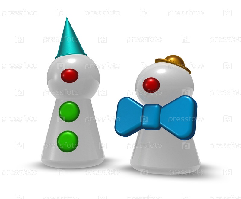 Клоуны на белом фоне. 3D иллюстрация