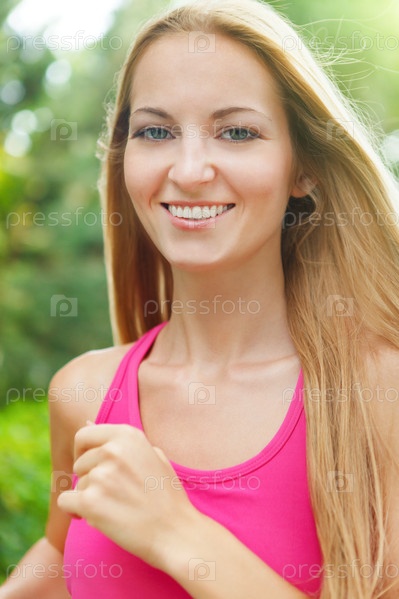 Спортивная молодая женщина бежит трусцой