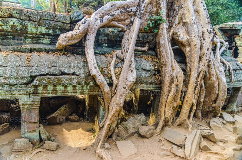 Гигантские дерево на крыше храма. Камбоджа. Анкор Ват