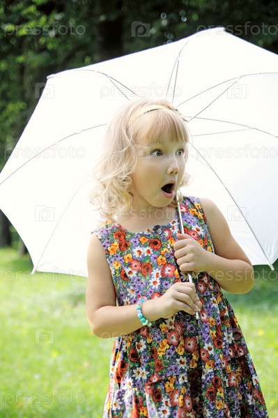Маленькая девочка в парке под зонтом