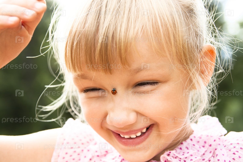 Девочка с божьей коровкой на носу