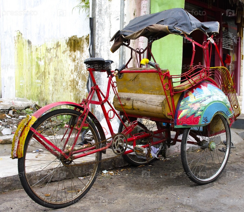 Трехколесный велосипед рикши на улицах Джокьякарты