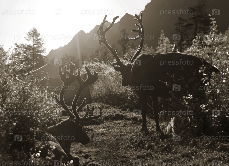 Силуэты оленей в лесу