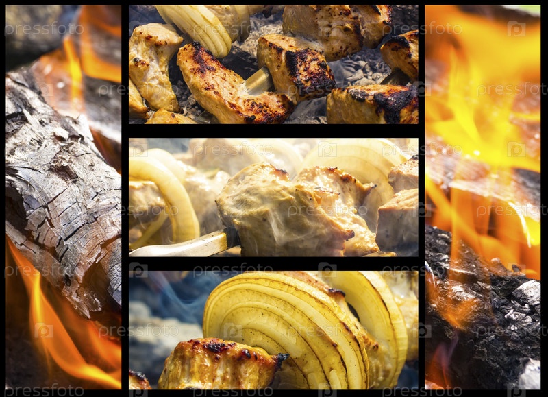 Приготовление шашлыка, коллаж