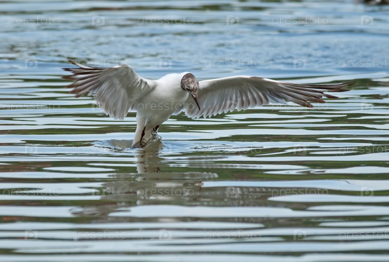 Летающий озерный чайка (Larus ridibundus)