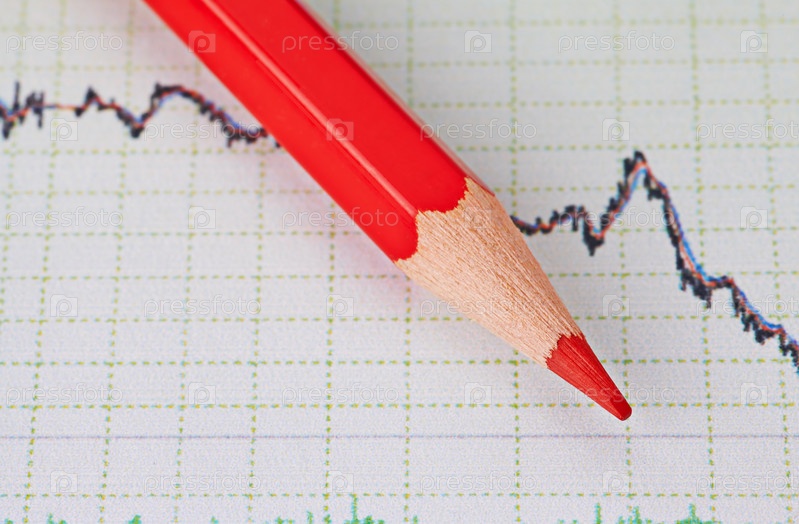 Восходящий график фондового рынка с краснымкарандашом. Выборочный фокус