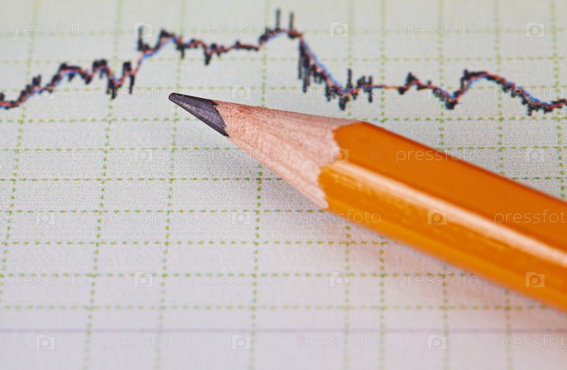 Восходящий график фондового рынка с карандашом. Выборочный фокус
