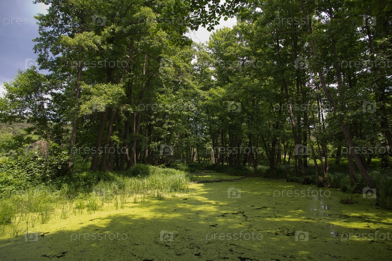 Лесное озеро летним днем