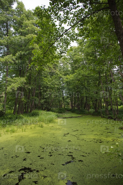 Лесное озеро летним днем