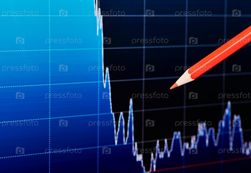Нисходящий финансовый график и красный карандаш. Темный фон. Выборочный фокус