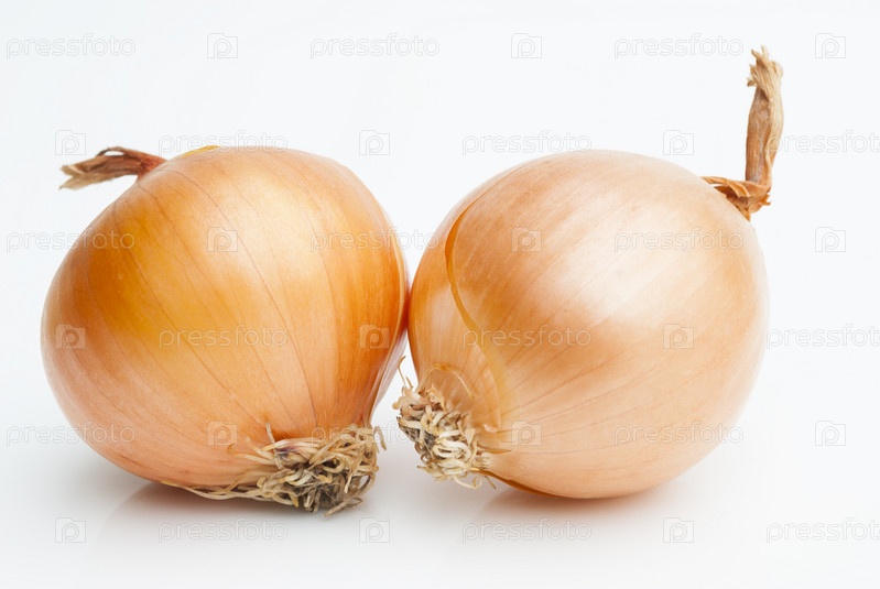 Две луковицы на белом фоне