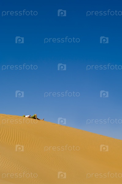 Человек лежит в пустыне