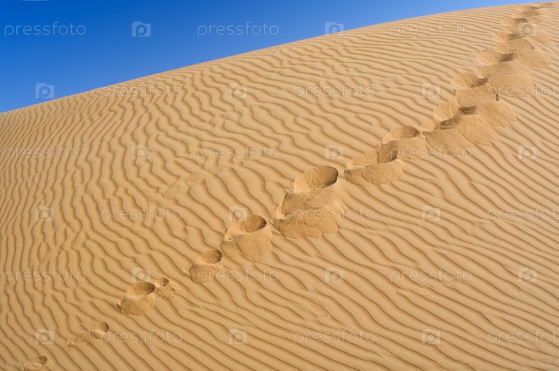 Человеческие следы на желтом песке