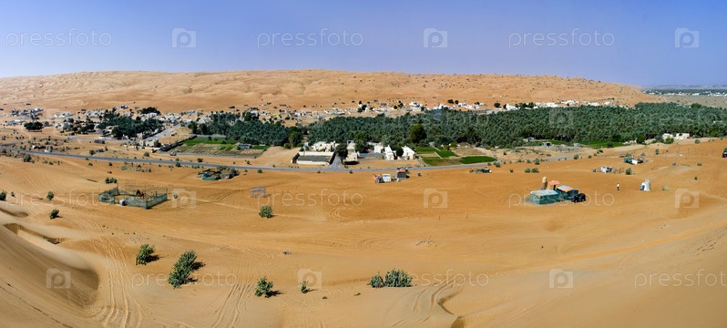 Панорама деревни в песках Вахиба, Оман