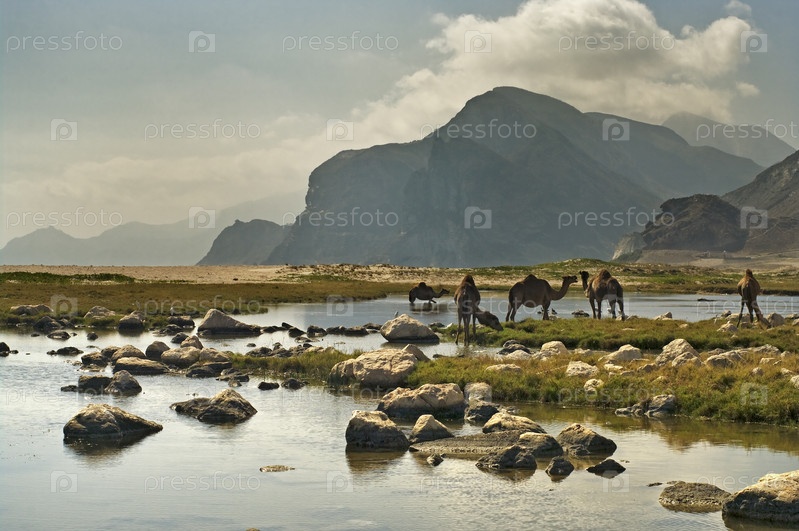 Верблюды на пляже, Оман, Ближний Восток