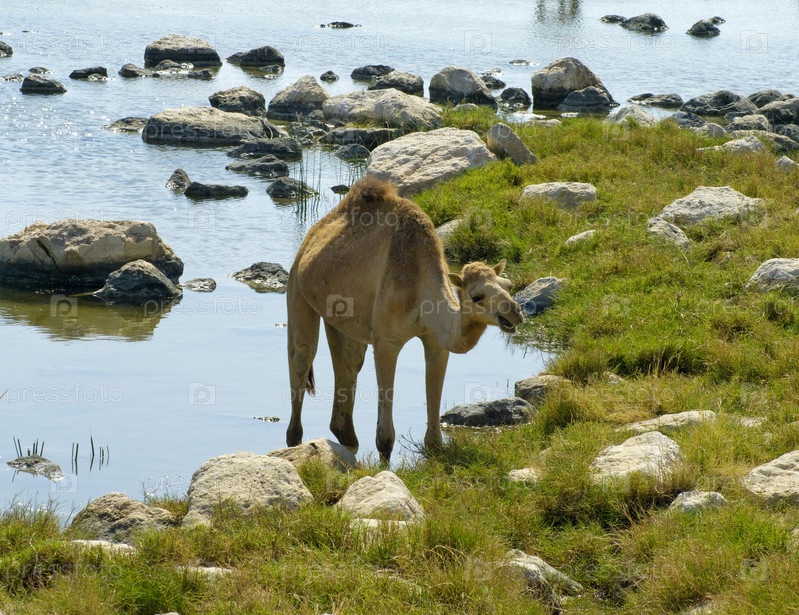 Верблюд на пляже, Оман, Ближний Восток