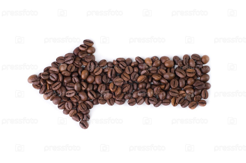 Стрелка из кофейных зерен, изолированная на белом