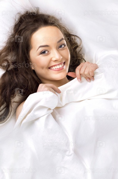 Портрет красивой женщины, спящей в белой постели