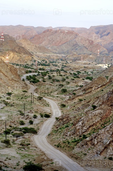 Вечерняя дорога петляет в горах Омана