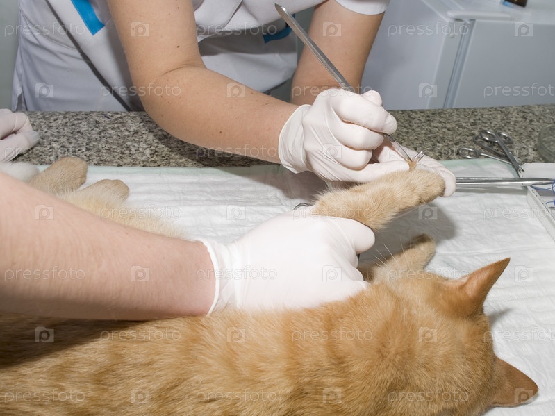 Ветеринар лечит больную кошку