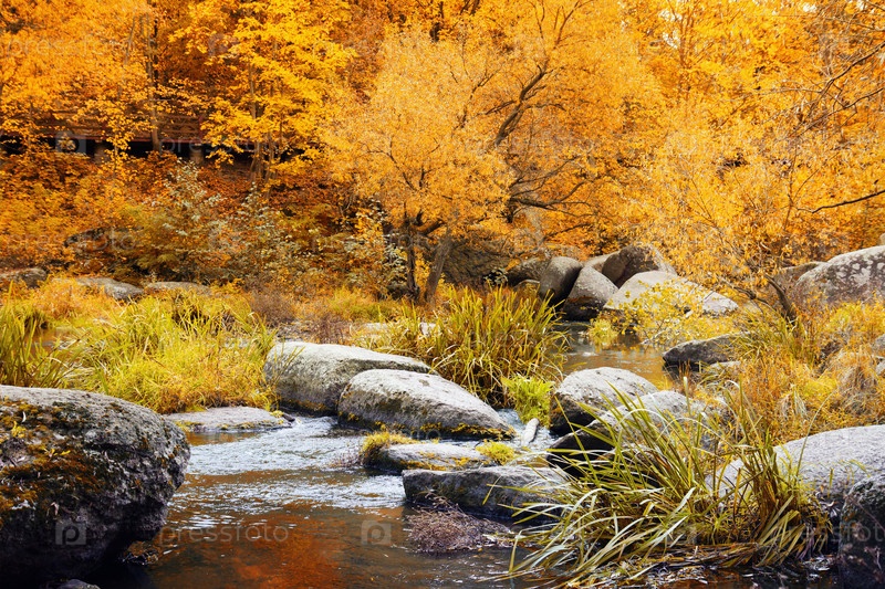 Осенний парк с небольшой рекой в Украине