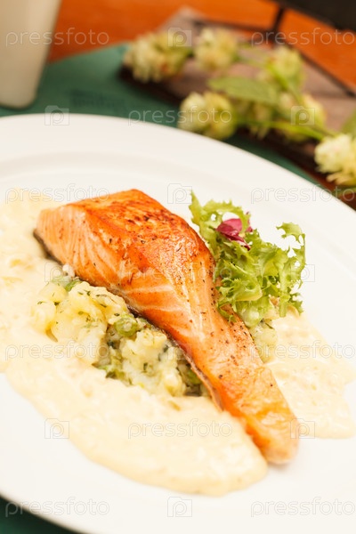 Стейк из лосося с овощами