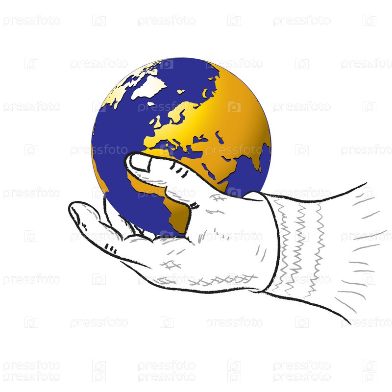 Рука человека и планета. Векторные иллюстрации
